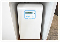 診療台で使用している水は、夜間など使わない間に細菌が繁殖してしまうリスクがあります。そこで当院では、うがいや治療の時などお口に入る水は、水専用の除菌システム「ポセイドン」を介して常に清潔に保っています。薬ではなく電気分解による除菌のため、衛生的かつ副作用のリスクも少ない、身体にやさしい水です。